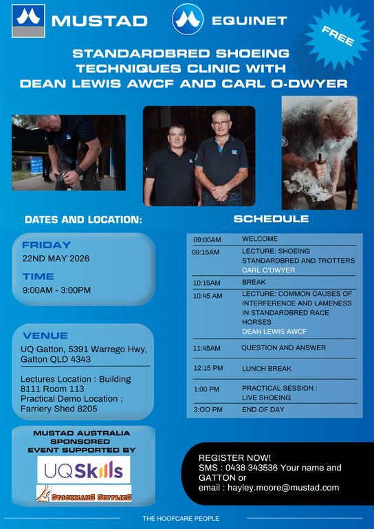 More details to follow but please send your expressions of interest to mail@combinedfarriersupplies.com.au or SMS 0438 343536 with your name and PERTH.