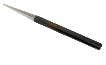 A pritchel is a specialised forging tool designed for creating nail holes in horseshoes.