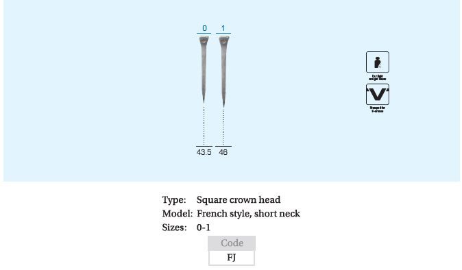 The FJ Slim, has a longer, thinner shank the most nail models. It is suitable for lighter breeds with thin hoof walls.