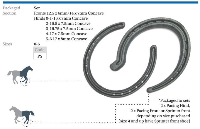 - Slightly heavier sections in the front shoes, variable section widths in pacing hind and a true side weighted hind.