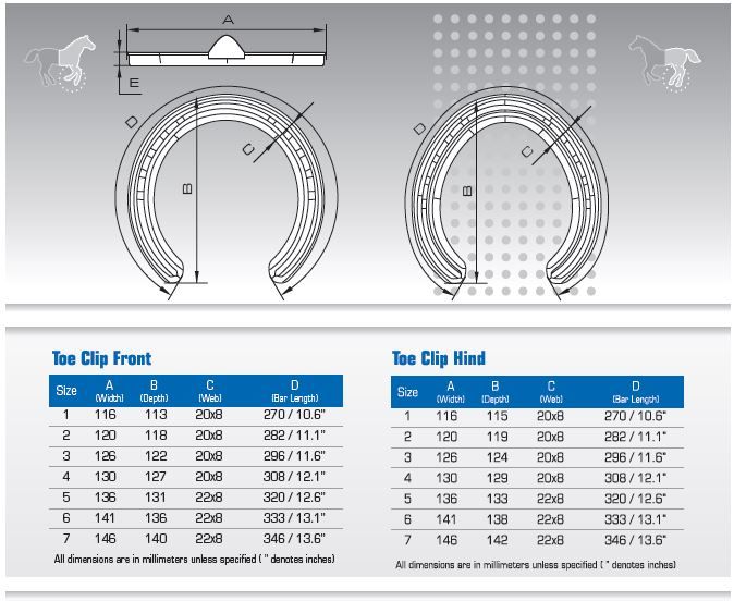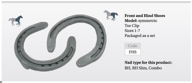 The Flat Hack Shoe (FHS) range is made using low carbon steel and a unique manufacturing process which maintains web width throughout the entire bars length. This results in greater coverage at the heels, compared to a traditional flat shoe. This easily shaped shoe is packaged in sets (front and hind top clipped versions). Size 1-4 are a 20x8mm cross section whilst the larger shoes in the range (5,6) are a heavier 22x8mm section.