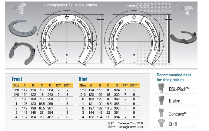 We challenge you to find better all around turned steel horseshoes with truer fit, longer wear, and greater performance in both front and hind patterns. Their full toes simply last longer, their balanced shape means less time on the anvil, they relieve pressure on the sole and the nail holes are perfect for thin walled hooves. The added benefits of the TS8 are an even thicker and slightly wider horseshoe for great support and protection of the hoof.
