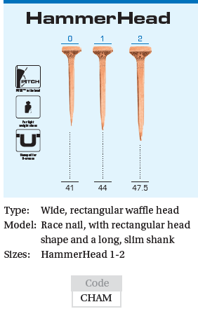 The Copper Hammerhead nail has the same features as the traditional Hammerhead nail but with the added benefit of the copper coating.