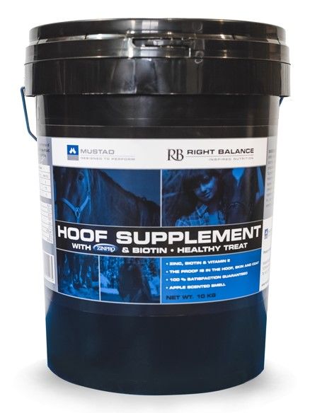 Right Balance by Mustad is a premium hoof supplement formulated with a blend of Biotin, Zinc (Zinpro), Vitamin E, and other essential nutrients proven to enhance the health of hooves, skin, and coats. This supplement is our top recommendation for improving equine hoof quality.