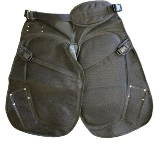 * Adjustable Fit: Features adjustable buckles at the waist and inner thigh to ensure a secure and customized fit.