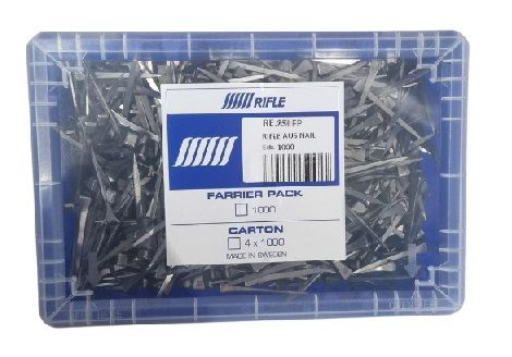 The Rifle E Slim nails and available in practical Farrier Packs. Each Farrier Pack contains 1000 nails and is housed in a durable, reusable container for your convenience.