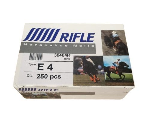 The Rifle E-Head nail is a European-style nail distinguished by its rectangular head, designed for pleasure and sport horses.