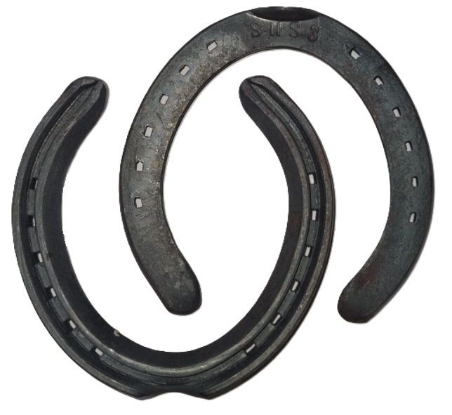 It is a low carbon steel range of horseshoes, which means it can be cold shaped. It is manufactured using a rolled steel profile and traditional bending methods.