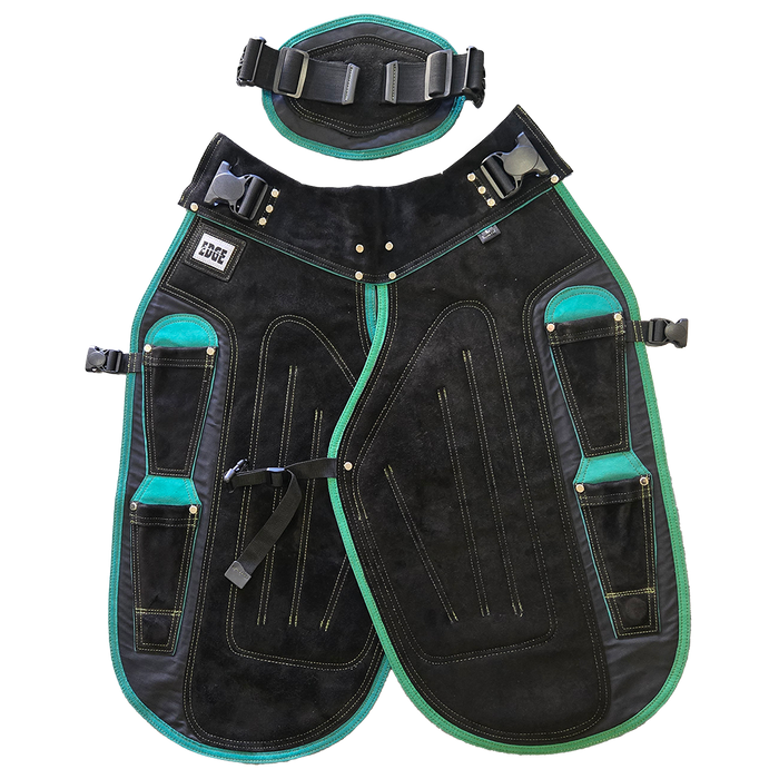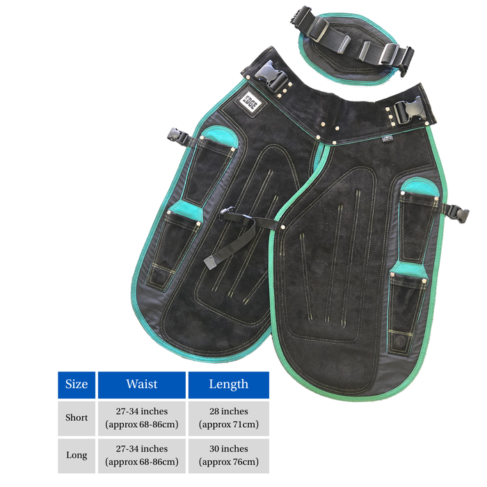 The Edge Women’s Apron is designed to provide tailored comfort and protection for female farriers. Providing all the same features as the Men’s variant but designed to accommodate key anatomical differences such as wider hips, the Edge Women’s Apron is available in short and long options.