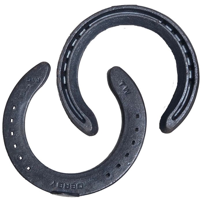 Sectioned for horses that require extra wear, the Derby Thin Wall Front Toe Clip Steel Horseshoe provides a balanced shoeing option.